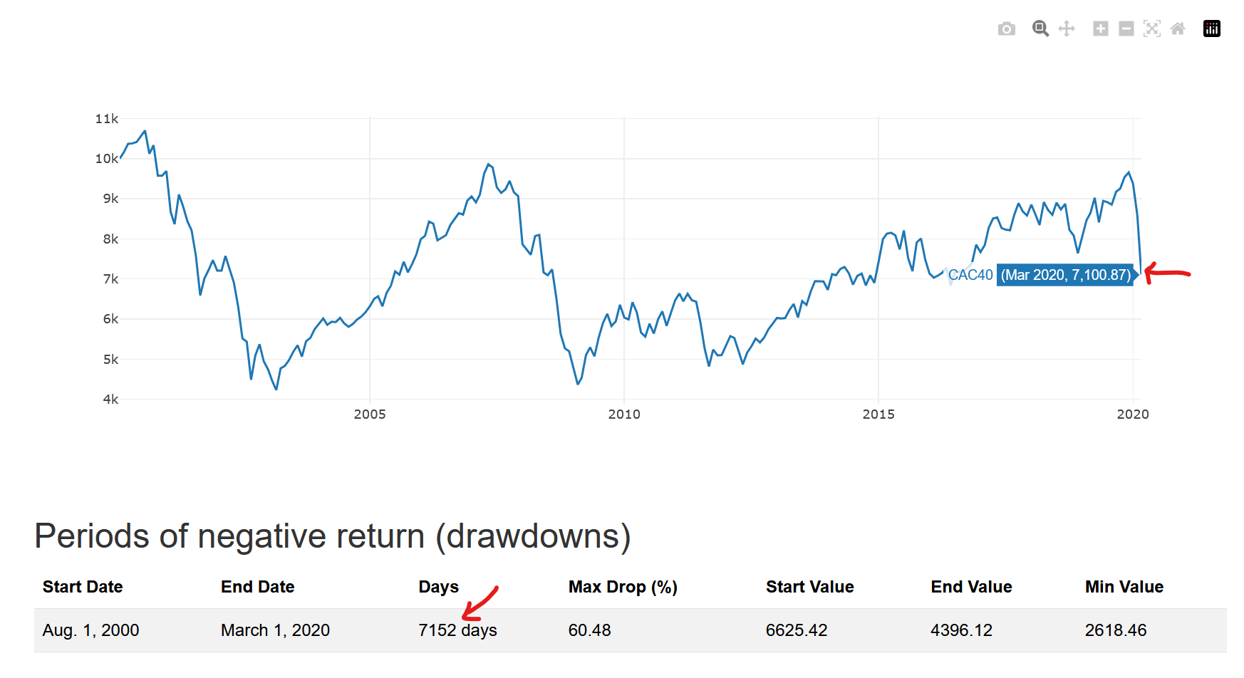 CAC 40, Index of 40 blue chip french companies, similarly had negative returns for more than 20 years. Infact after the dot com crash cac recovered only for global surge after pandemic.